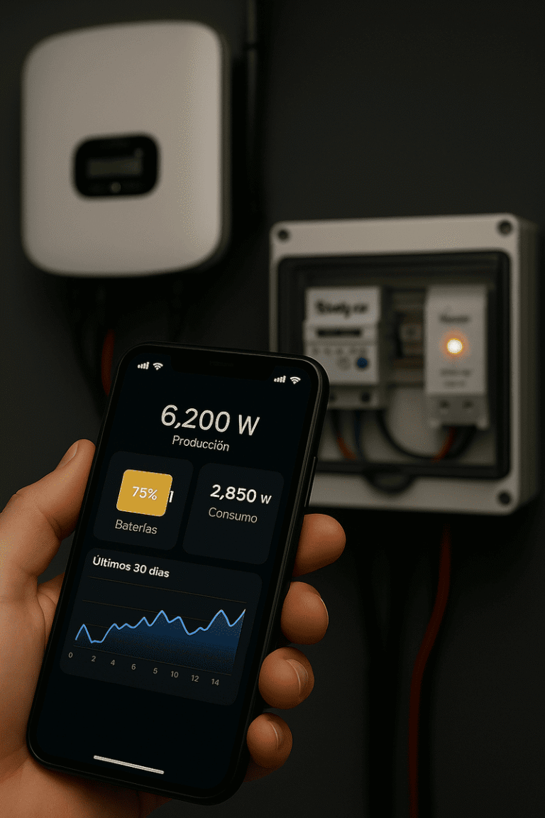 - Monitoreo en tiempo real → sabés cuánta energía generás, consumís y almacenás.