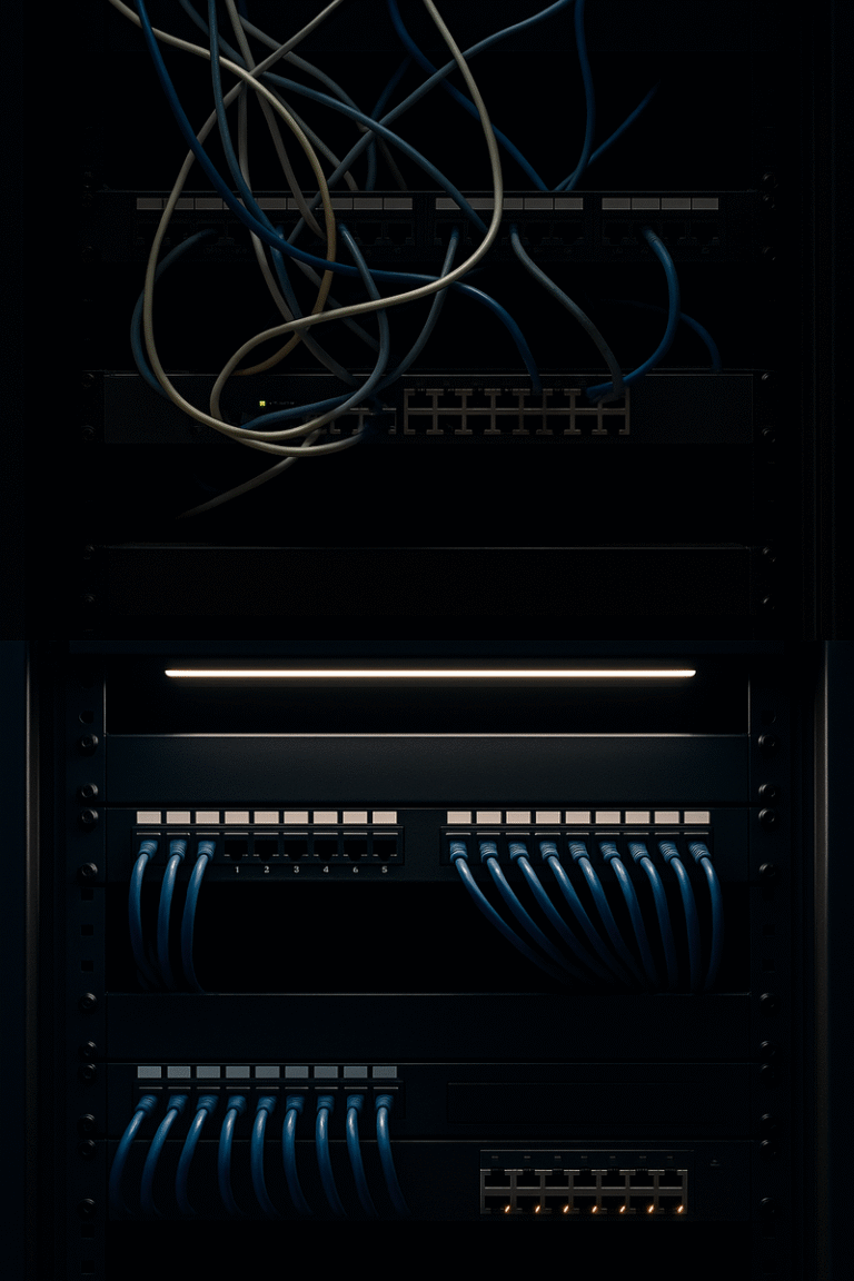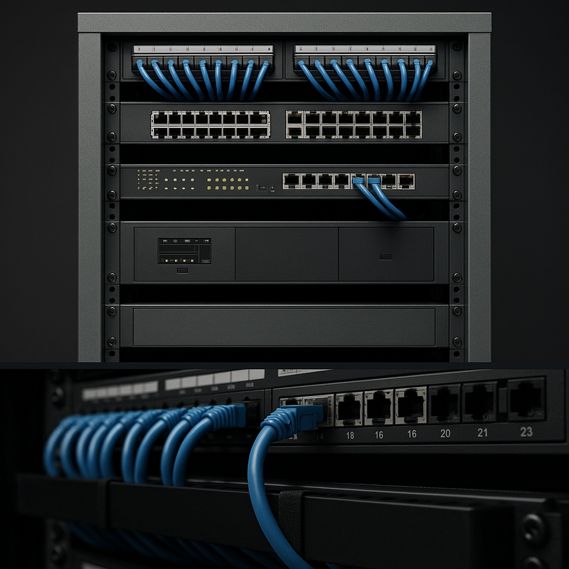 - Patch panels, organizadores, rotulación y orden técnico